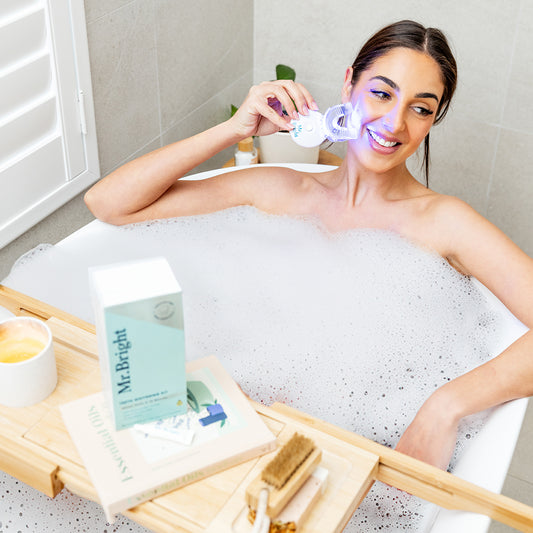 Mr. Bright teeth whitening kits use LED technology that emits cold blue light to activate the whitening agents in our formula. As we age, our teeth get stained from the food and drinks we consume.